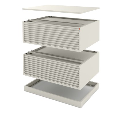 • Meuble complet comprenant Dessus, 2 blocs identiques de 10 (Classic, Dinamic) ou 20 (Compact) tiroirs, un socle plinthe.