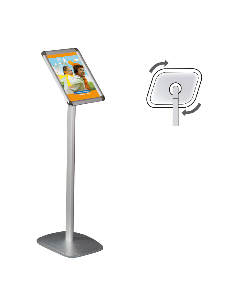 Ce support permet à la fois l’accueil et l’information. Son cadre orientable permet d’optimiser le confort de lecture en fonction du lecteur.