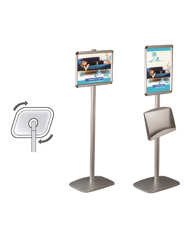 • Mât rainuré permettant l’ajout de porte-brochures métal.