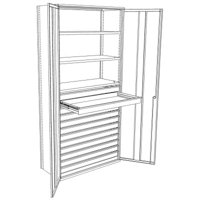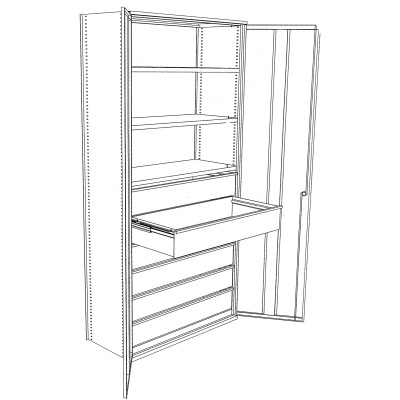 Ce cabinet offre la possibilité de stocker des objets de différentes tailles à la fois en tiroirs et sur étagère. La structure fermée de celui-ci protège les collections de la poussière et de la lumière.